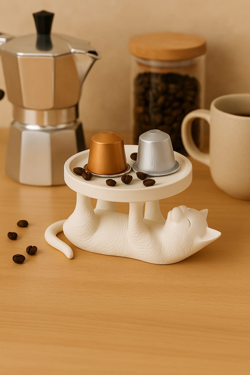 Kedi Sunumluk Tabak Beyaz 14 x 14 cm